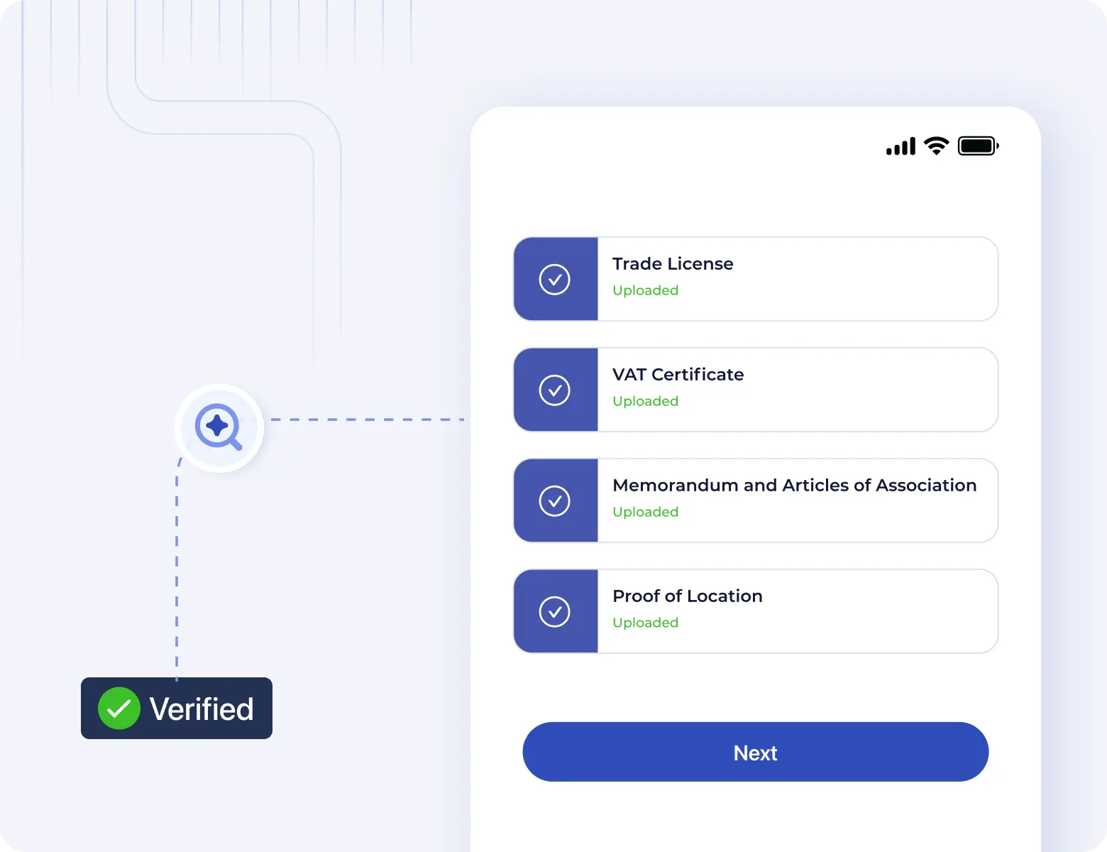استخدم الذكاء الاصطناعي لتسريع التحقق من العملاء والشركات. أتمت إجراءات العناية الواجبة بدقة لتقليل أوقات التسجيل وضمان الامتثال للمعايير