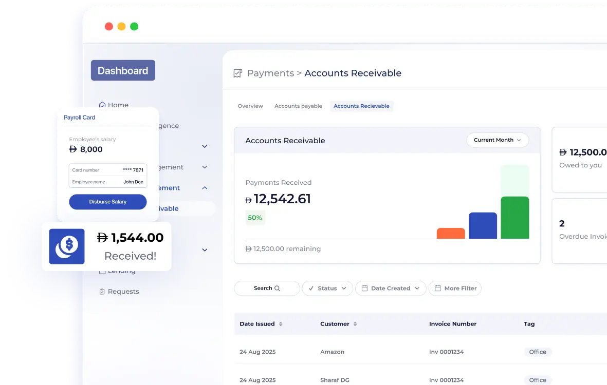 Equip businesses to manage expenses, track invoices, and monitor cash flow—all in one platform.