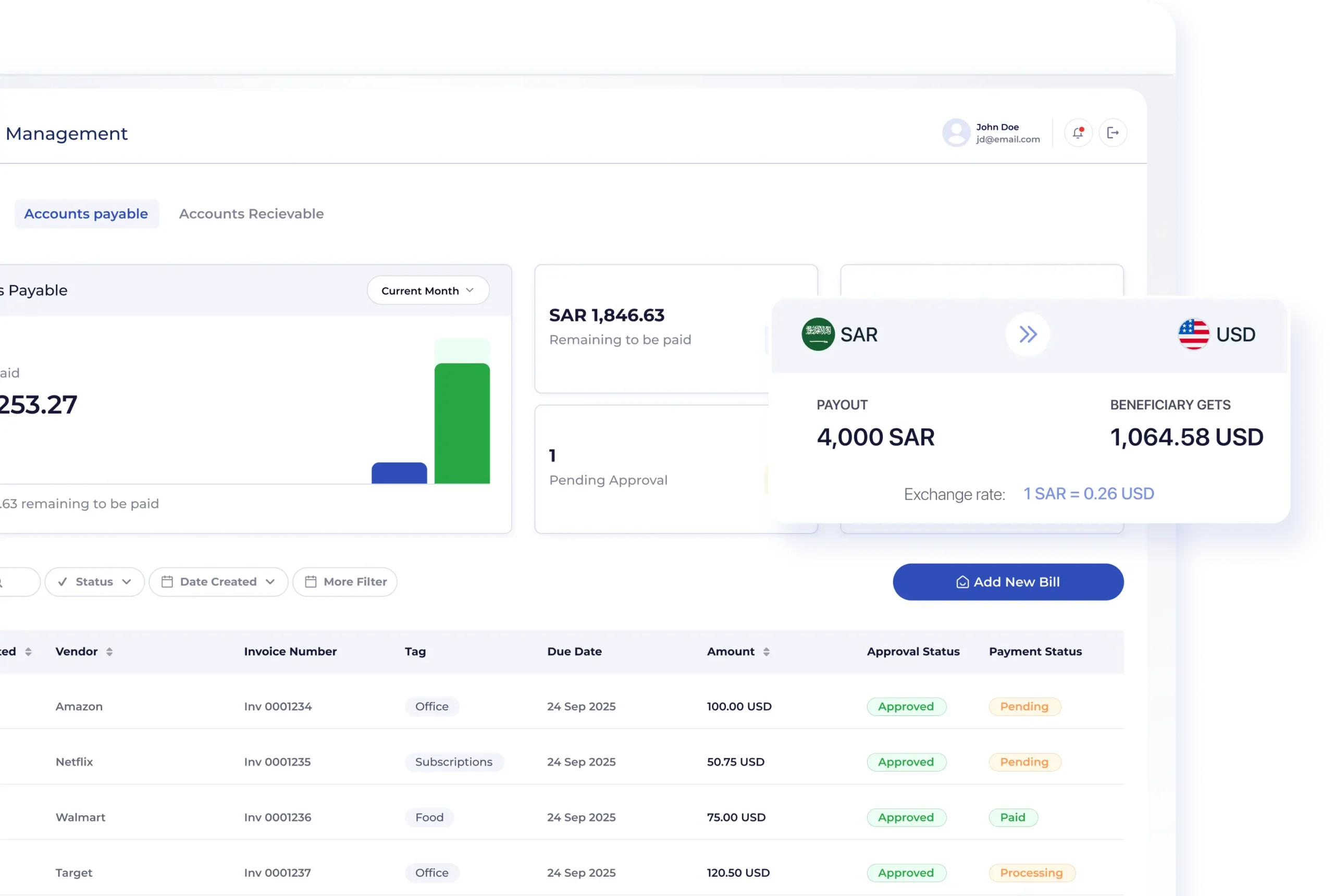 Let businesses pay international suppliers in multiple currencies—with FX margin capture.
